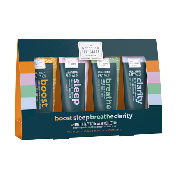 A collection of Body Washes to enhance your mood and help you with the day-to-day. Each wash is formulated with specially selected essential oils to help uplift, relax, clear, or soothe. This pack contains 4 x 75ml tubes: Boost, Breathe, Clarity and Sleep